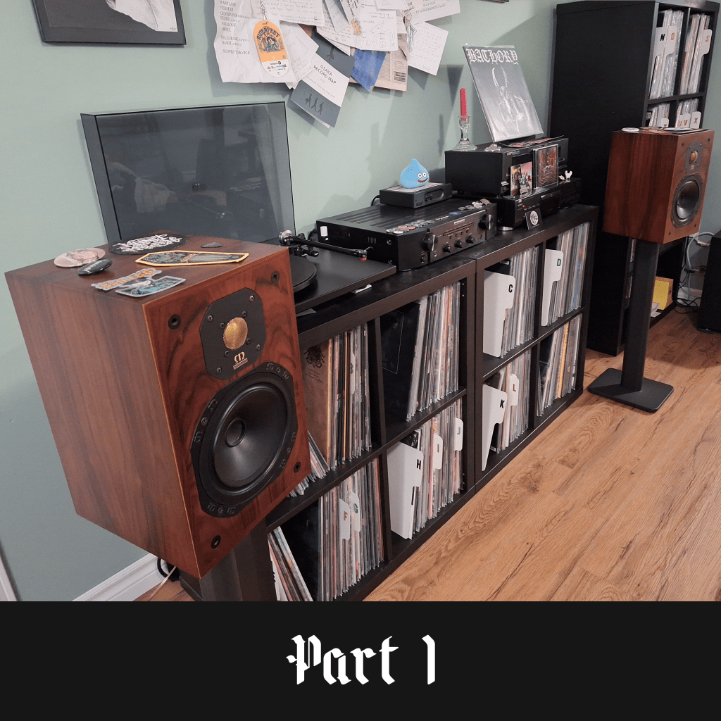 Through all this, I acquired or was given the necessary equipment to playback my physical media. I won’t bore you by going through every piece of gear I’ve ever owned, but I’ve seen a lot of entry-to-mid level gear in my time. I’ve gone from a tiny CD player with speakers built in, to the workhorse entry level AT LP60 turntable plugged (incorrectly) into my housemate’s father’s old AV receiver, to a hot-rodded Rega Planar 3 and (mostly) separates system I built by trolling kijiji and Facebook marketplace over the years. At one point I modified speakers I owned to try and tune them to my tastes. Hell, there was even a time when I didn’t own any gear and I sold off most of my CDs to pay rent– my only way to listen to music being in my 2011 Hyundai Accent, the dozen-or-so remaining jewel cases in my possession rattling in my door storage as Cannibal Corpse‘s Torture spewed out of straining speakers at maximum volume.